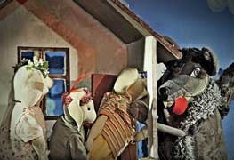 Ihr Haus ist zu klein und so machen sich die drei kleinen Schweinchen auf den Weg neue Häuser zu bauen. Doch die neuen Häuser aus Stroh und Holz halten dem pustenden Wolf nicht stand. Da hilft nur weglaufen. Nur das Haus aus Stein hält und so muss sich der Wolf etwas einfallen lassen. Ob er das dritte Schweinchen einfangen kann? Ein Puppenspiel für die ganze Familie mit einem Wolf der sächselt und dabei an Tollpatschigkeit kaum zu überbieten ist.